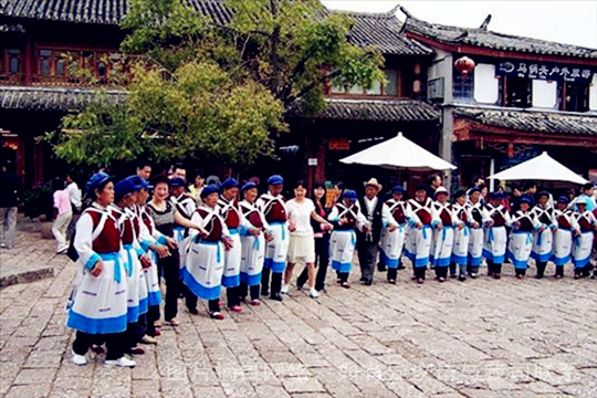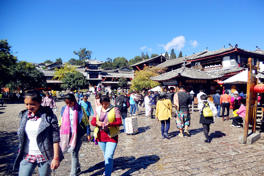 丽江四方街是丽江古城中心,交通四通八达,周围小巷通幽,据说是明代木氏土司按其印玺形状而建。这里是茶马古道上最重要的枢纽站。明清以来各方商贾云集,各民族文化在这里交汇生息,是丽江经济文化交流的中心。
