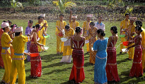 傣族泼水节,又名“浴佛节”,傣语称此节日为“比迈”,意即“新年”;西双版纳和德宏地区的傣族又分别称此节日为“尚罕”、“尚键”,两词均来源于梵语“samkranta”,意为“周转”、“变更”、“转移”,指太阳已经在黄道十二宫运转一周开始向新的一年过渡。布朗族、德昂族和阿昌族也过此节日。柬埔寨、泰国、缅甸、老挝等国也过泼水节。