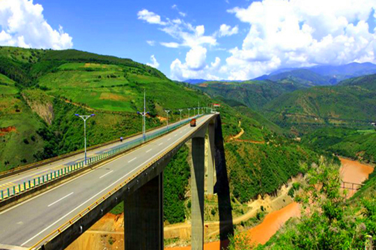 红河大桥在昆明通往泰国的G213高速公路上,有一段跨越云南元江(由元江至磨黑)的高速公路长预应力混凝土连续钢构桥,现被冠名为红河大桥。此桥长801米,宽20余米,桥的最大跨径265米(是中国第二大跨径桥),桥面距江面高度163米,是迄今同类同型桥梁中的世界第一高桥。