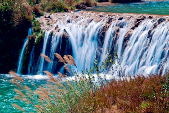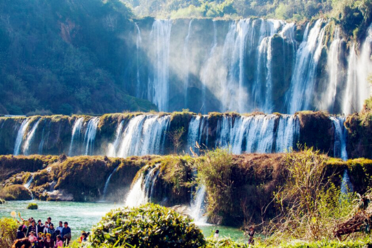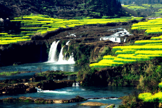 九龙瀑布是九龙河上最具盛名的大瀑布,当地布依族群众一向称之为“大叠水”,人们习惯称之为“九龙瀑布”。由于特殊的地质构造和水流的千年侵蚀,在此形成了十级高低宽窄不等,形态各异的瀑布群,其中最大的一级九龙瀑布,宽112米,高56米,气势恢宏,蔚为壮观,号称九龙第一瀑。九龙瀑布,因发源于九龙河而得名。河水从白腊山背后的群山中奔涌而来,哺育着罗平大地上的各民族儿女。