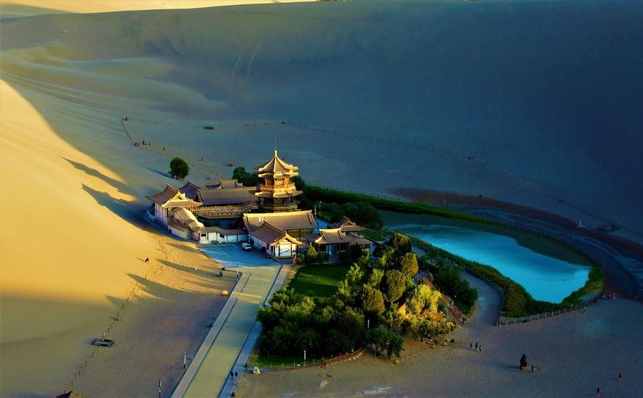 交通提示:敦煌—东台吉乃尔湖 全程国道+高速 474km 行车时间约 5.5H 东台吉乃尔湖—德令哈 全程国道+高速 319km 行车时间约 4H 早餐后乘车翻越当金山,穿越柴达木盆地,它是中国三大内陆盆地之一,"柴达木"为蒙古 语,意为“盐泽”,被称为中国的“聚宝盆”,欣赏沿途戈壁大漠的独特风光。●【鸣沙山月牙泉】(游览约 2 小时,含门票)古往今来以“山泉共处,沙水共生”的奇妙 景观著称于世,被誉为“塞外风光之一绝”。鸣沙山以沙动成响而得名。东汉称沙角山, 俗名神沙山;月牙泉处于鸣沙山环抱之中,其形酷似一弯新月而得名。古称沙井,又名药 泉。鸣沙山、月牙泉是大漠戈壁中一对孪生姐妹,“山以灵而故鸣,水以神而益秀”。无论 从山顶鸟瞰,还是来泉边漫步,都会驰怀神往,遐思万千,确有“鸣沙山怡性,月牙泉洗 心”之感。 ●【戈壁雅丹地貌群】(游览约 15 分钟,赠送景区)这是一片经历过 7000 万年自然风蚀 形成的独具一格的雅丹地貌,继续深入便是无人区,地貌怪诞,风声诡秘瑟人,随手一拍 都是大片。 ●【东台吉乃尔湖】(游览约 1 小时,赠送景区)东台吉乃尔湖,被誉为青海的马尔代夫, 这里的景色比九寨沟、喀纳斯还要美,水特别清澈像是马尔代夫,白花花的盐,比茶卡盐 湖的盐是又多又干净。远远望去你会发现湖水上方的天空格外的清透明亮,满眼的蓝色给 人以极其强烈的视觉冲击,仿佛来到了人间天堂! 游览结束后乘车赴酒店入住休息!!! 【温馨提示】 1. 今日行程路程较紧张,途径多处无人区,行驶的地区沿途没有酒店、驿站、餐厅,请提 前准备一些零食及饮料,可缓解中途劳累。 2. 戈壁雅丹地貌群和东台吉乃尔湖为赠送景点,若因道路问题无法参观无费用可退。 3. 如遇莫高窟第四日无票,安排至今日上午参观,则雅丹地貌群和东台吉乃尔湖 2 个景 点调整为翡翠湖,免费景点无任何退费!